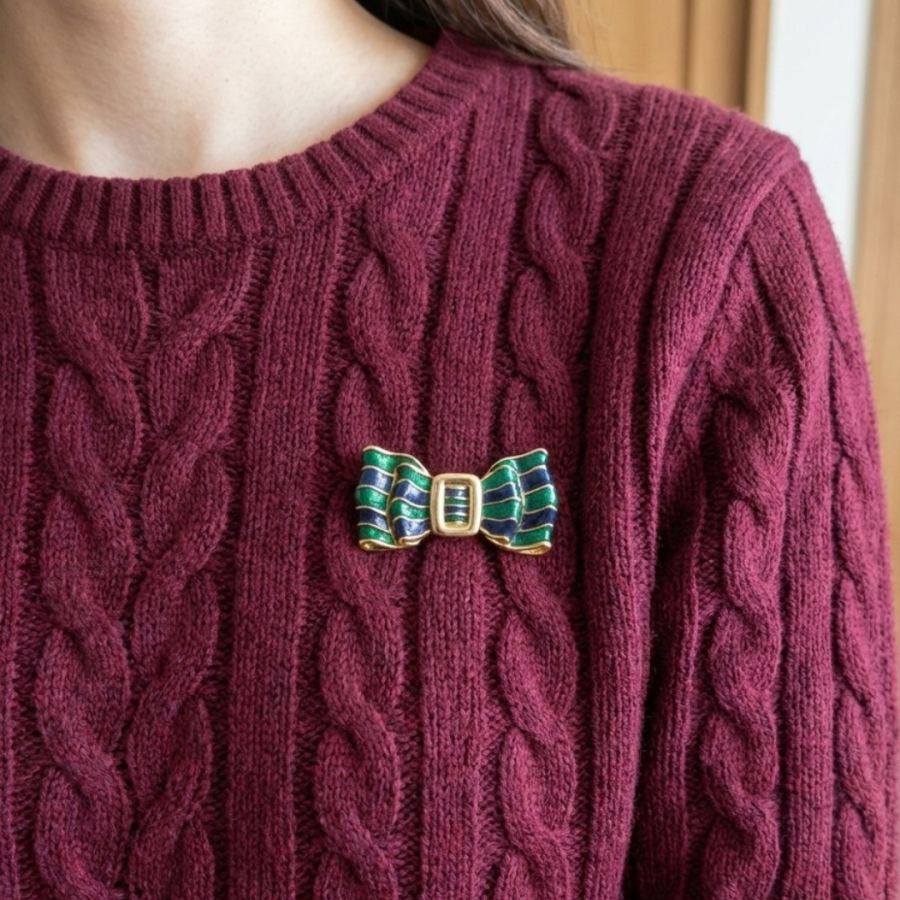 1980年代 ビンテージ ブルー×グリーン エナメルリボンブローチ