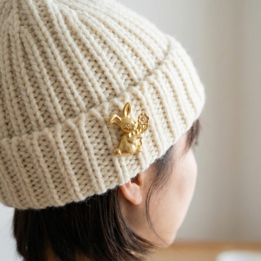 1980年代 ビンテージ お花を持ったうさぎのピンバッチ