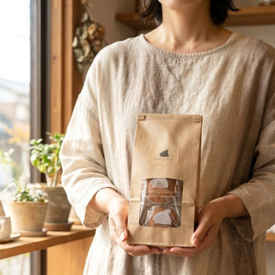 クラフト袋にやさしく包んでお届けします。ナチュラルで温かみのあるラッピングは、ちょっとした贈りものにもぴったりです。