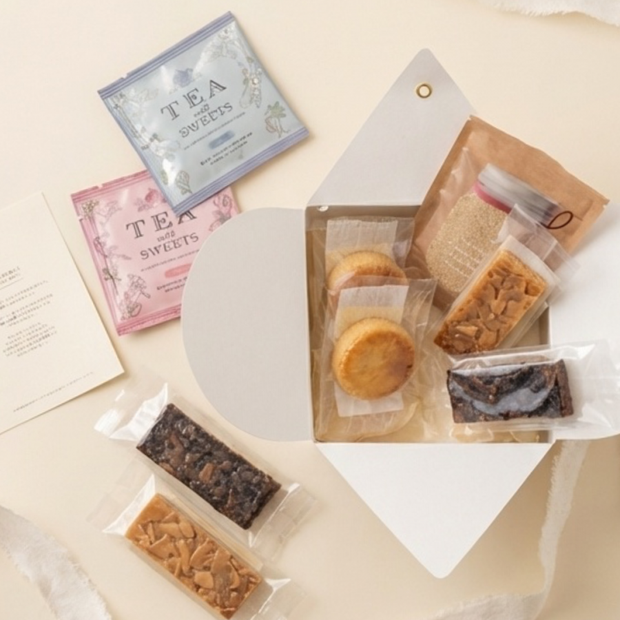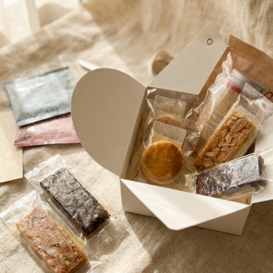 感謝の気持ちを込めて、人気の焼き菓子を少しずつ楽しめる「haba sa hanaからのご挨拶ボックス」をご用意しました。