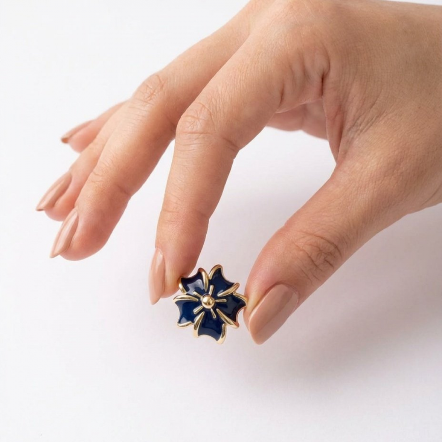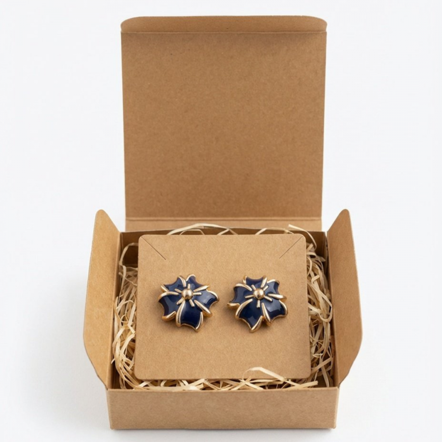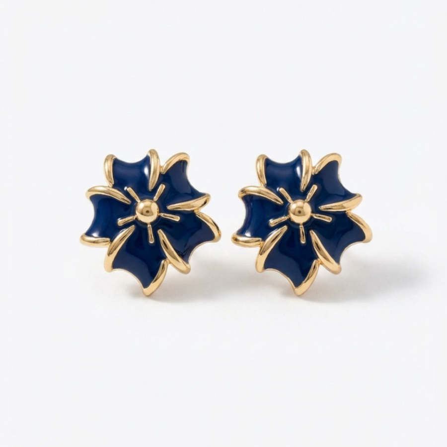 1980年代 ビンテージ ネイビーフラワー クリップイヤリング(ゴールド縁)