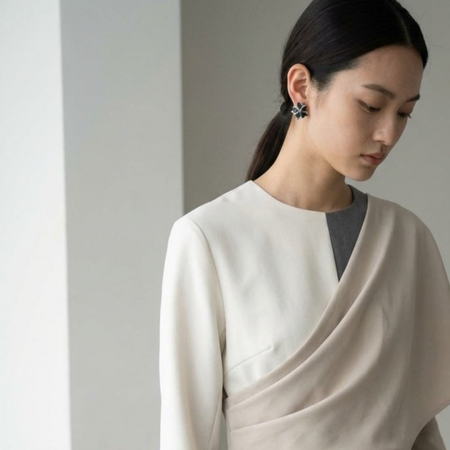 小ぶりでも存在感があり、顔まわりをきゅっと引き締めてくれる配色。